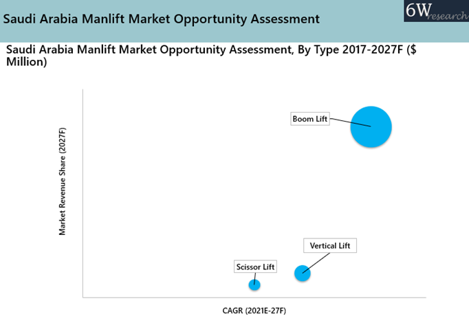 According to 6Wresearch, Saudi Arabia Manlift Market size is projected to grow at a CAGR of 4.0% during 2021-2027. After the oil price crises of 2014, the Saudi Arabia started to diversify its economy by reducing its reliance on oil sector and investing heavily in non-oil sectors which resulted in setting up of large-scale commercial establishments, such as economic cities, medical cities, hotels, offices, and data centres across the country under the proposed economic city projects, such as Jazan Economic City and Prince Abdulaziz Bin Mousaed Economic City. This is expected to result in increased construction activities in Saudi Arabia over the coming years, resulting in an increased demand for manlift equipment in the forecast period.